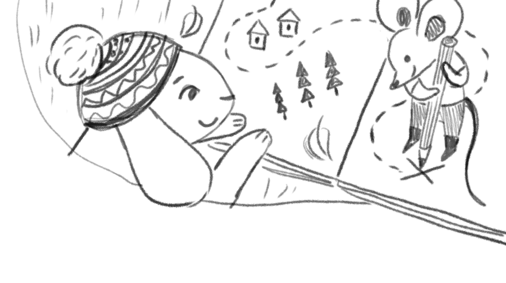 Сомневается Зайка, боится опасного путешествия. А Мышонок его подбадривает.